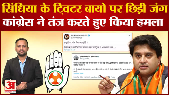 कांग्रेस ने सिंधिया पर साधा निशाना कहा ट्विटर बायो से हटाया बीजेपी