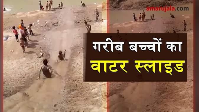 बच्चों की अपनी ही दुनिया होती है। उन्हें खुश रहने के लिए किसी संसाधन की जरुरत नहीं होती। वे कहीं न कहीं से खुश होने का तरीका ढूढ़ं ही लेते हैं। जैसा ये बच्चे कर रहे हैं। अपना वाटर स्लाइड बना कर मस्ती कर रहे हैं।