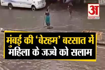 Viral Video Of Woman In Heavy Rain Of Mumbai:kanta tai guards open manhole to avoid accident in matunga