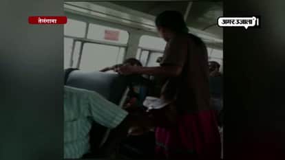 तेलंगाना के महबूबनगर में एक बस में तब हंगामा हो गया जब महिला कांस्टेबल और महिला कंडक्टर एक-दूसरे को मारने लगीं। बताया जा रहा है कि यह लड़ाई बस टिकट खरीदने को लेकर हुई।