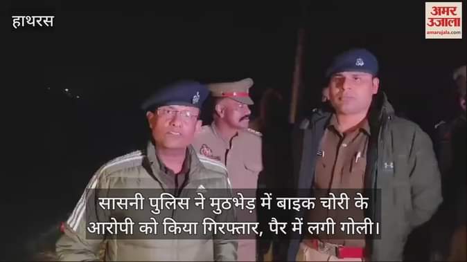 कोतवाली सासनी पुलिस ने 24 दिसंबर को हनुमान चाैकी के निकट मुठभेड़ के दाैरान बाइक चोरी के आरोपी को गिरफ्तार कर लिया। आरोपी के पैर में पुलिस की गोली लगी है। घायल को पुलिस ने जिला अस्पताल में भर्ती कराया है।