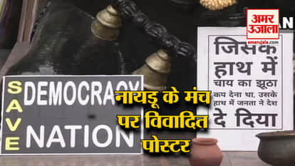 नायडू के मंच पर दिखा पीएम के खिलाफ विवादित पोस्टर, टीडीपी ने किया किनारा