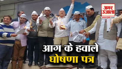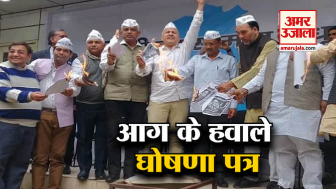 दिल्ली में 'आप' और बीजेपी ने जलाया एक-दूसरे का घोषणा पत्र, केजरीवाल ने पीएम मोदी को कहे अपशब्द