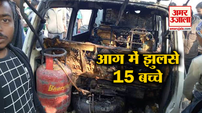 भदोही में स्कूल वैन में लगी आग, 15 बच्चे झुलसे, 8 की हालत गंभीर