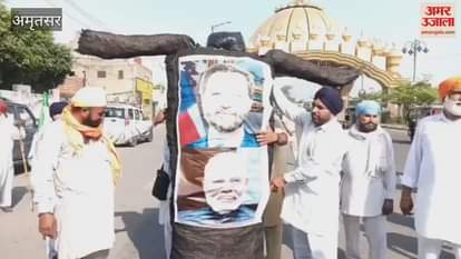 Amritsar, Kisan Mazdoor Morcha burnt effigies of US Vice President and Prime Minister Modi