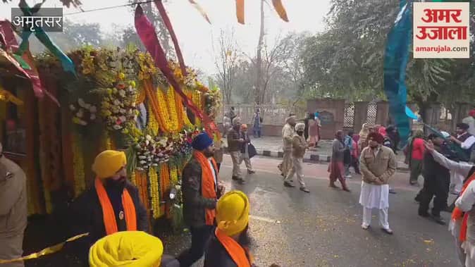 Hindi News ›   Video ›   Punjab ›   Amritsar News ›   grand Nagar Kirtan from Amritsar to Pohuvind