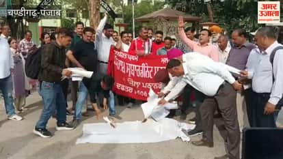 Pathankot: पंजाब मुलाजिम और पेंशनर्स एसोसिएशन यूनियन ने फूंकी बजट की कापियां और सीएम मान का पुतला