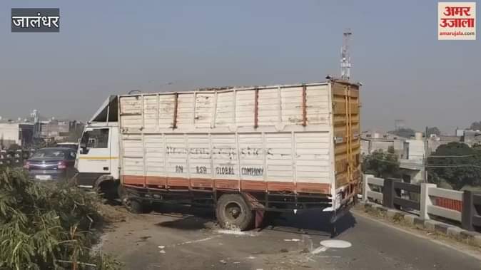 जालंधर में स्कूल बस को बचाते डिवाइडर पर चढ़ा ट्रक, हाईवे पर लगा जाम