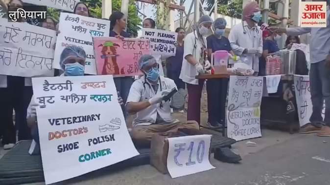 लुधियाना गुरु अंगद देव वेटरनरी एंड एनिमल साइंस यूनिवर्सिटी के छात्र अपनी मांगों को लेकर सरकार के खिलाफ रोष प्रदर्शन कर रहे हैं। सोमवार को छात्रों का यह प्रदर्शन 32वें दिन में प्रवेश कर गया है। सोमवार को छात्रों ने बूट पॉलिश, नींबू पानी व चाय का स्टाल लगाकर रोष जाहिर किया और सरकार के खिलाफ नारेबाजी भी की।