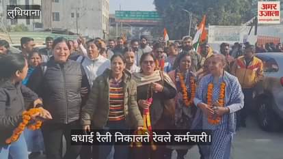 VIDEO : लुधियाना स्टेशन पर यूआरएमयू की जीत का जश्न, रेलवे कर्मियों ने निकाली बधाई रैली