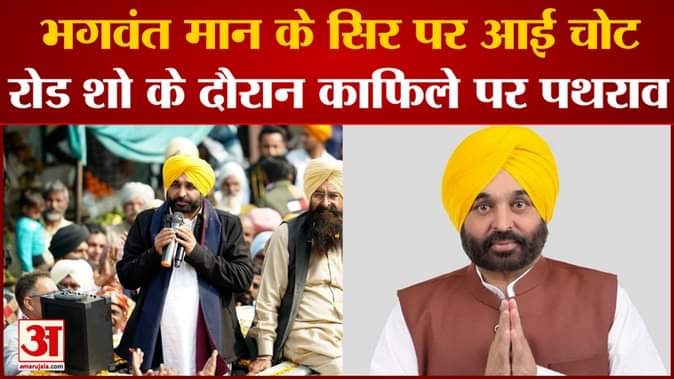 पंजाब चुनाव 2022: भगवंत मान के सिर पर आई चोट, रोड शो के दौरान काफिले पर पथराव