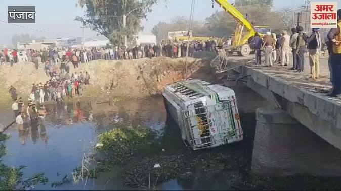 VIDEO : फरीदकोट में ट्रक की टक्कर से सेमनाले में गिरी बस, पांच लोगों की माैत