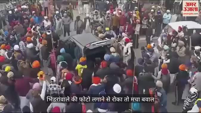 VIDEO : गुरुद्वारा साहिब में भिंडरांवाले की फोटो लगाने से रोका तो मचा बवाल, भीड़ ने कार तोड़ी
