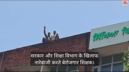 VIDEO : मोहाली में पीएसईबी की इमारत पर चढ़े बेरोजगार शिक्षक, सरकार और प्रशासन के खिलाफ नारेबाजी