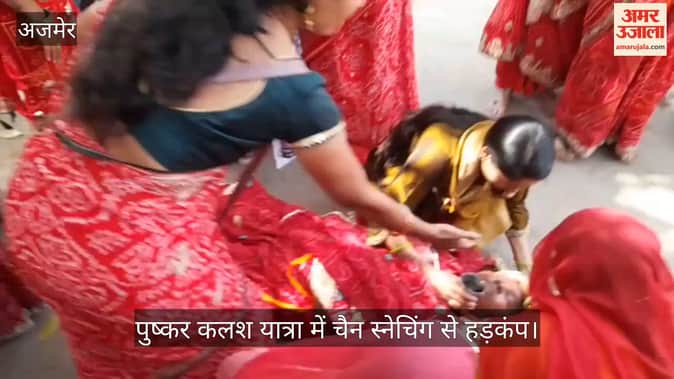 पवित्र तीर्थ नगरी पुष्कर में बागेश्वर धाम हनुमंत कथा से पूर्व निकाली गई कलश यात्रा के दौरान चेन स्नैचिंग की घटनाओं से अफरातफरी मच गई। श्रद्धालुओं की भारी भीड़ का फायदा उठाकर बदमाशों ने एक के बाद एक पांच महिलाओं को अपना शिकार बनाया। घटना के बाद यात्रा मार्ग पर कुछ समय के लिए तनाव और भगदड़ जैसे हालात बन गए, जिससे आयोजन की सुरक्षा व्यवस्था पर गंभीर सवाल खड़े हो गए हैं।