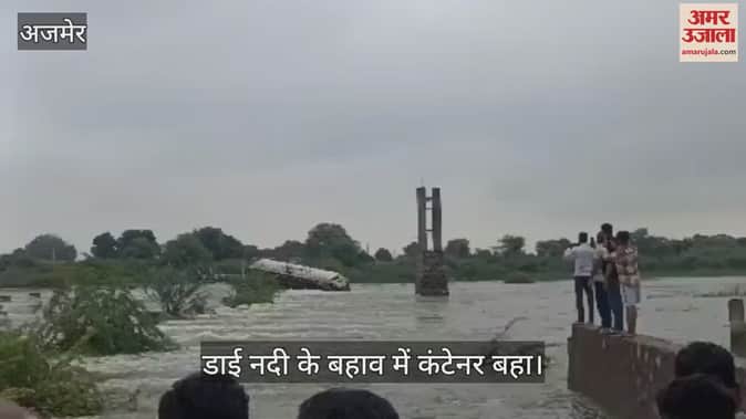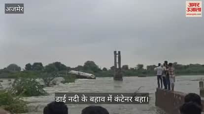 Ajmer News: डाई नदी के बहाव में कंटेनर बहा, ड्राइवर सुरक्षित, हादसे के बाद प्रशासन ने रास्ता बंद करवाया
