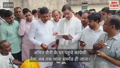 अलवर में पुलिस प्रताड़ना से परेशान होकर आत्महत्या करने वाले युवक अमित सैनी के घर सोमवार को कांग्रेस के वरिष्ठ नेता पहुंचे। उन्होंने पीड़ित परिवार से मुलाकात कर संवेदना जताई। अखिल भारतीय कांग्रेस के महासचिव जितेंद्र सिंह और नेता प्रतिपक्ष टीकाराम जूली सहित कई नेताओं ने इस मामले में सरकार और पुलिस प्रशासन को आड़े हाथों लिया। उन्होंने साफ कहा कि अब तक थाना सस्पेंड हो जाना चाहिए था, लेकिन उल्टा पुलिस मृतक के परिजनों पर ही दबाव बना रही है।