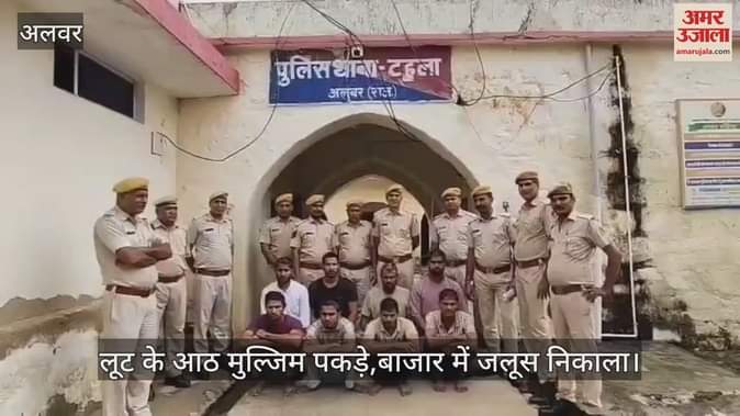 अलवर जिले के टहला थाना क्षेत्र के कुंडला गांव में दो व्यापारियों के साथ हुई लूट के मामले में पुलिस ने आठ आरोपियों को गिरफ्तार किया है। पुलिस ने उनके कब्जे से वारदात में प्रयुक्त एक स्कार्पियो और एक मोटरसाइकिल भी जब्त की। घटना के बाद इलाके में फैले भय को खत्म करने के लिए पुलिस ने आरोपियों का बाजार में जुलूस भी निकाला।