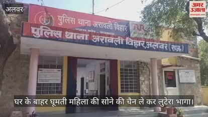 अलवर के अरावली विहार इलाके में रात करीब सवा आठ बजे एक युवक ने महिला की सोने की चेन छीन ली और भाग गया। महिलाएं चिल्लाईं और बदमाश के पीछे दौड़ीं, लेकिन वह थोड़ी दूर जाकर फरार हो गया। मोहल्ले के लोगों ने पुलिस को सूचना दी। पुलिस भी आई और बदमाश की काफी तलाश की, लेकिन वह पकड़ में नहीं आया। यह घटना तब हुई जब राजेश जैन की पत्नी निशा जैन अपनी रिश्तेदारों कविता जैन और सुनीता जैन के साथ 128 साउथ वेस्ट ब्लॉक के सामने टहल रही थीं। तभी अचानक एक युवक ने निशा जैन की सोने की चेन झपट ली और भाग गया।