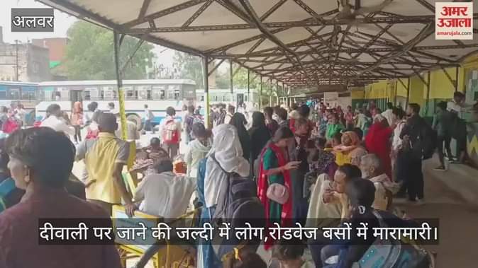 दीपावली के पर्व को देखते हुए सोमवार को अलवर के केंद्रीय बस स्टैंड पर यात्रियों की भारी भीड़ देखने को मिली। इस दौरान बसों में चढ़ने के लिए यात्रियों को असहज हालात का सामना करना पड़ा। सीटों की कमी और भीड़भाड़ के कारण कई लोग खिड़कियों और दरवाजों से बसों में घुसने की कोशिश कर रहे थे।