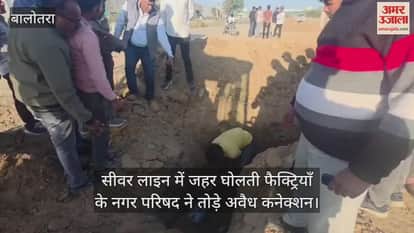 Hindi News ›   Video ›   Rajasthan ›   Balotra News ›   Balotra Officials inspected sewer manholes Jerla industrial area removed pipes containing chemical waste
