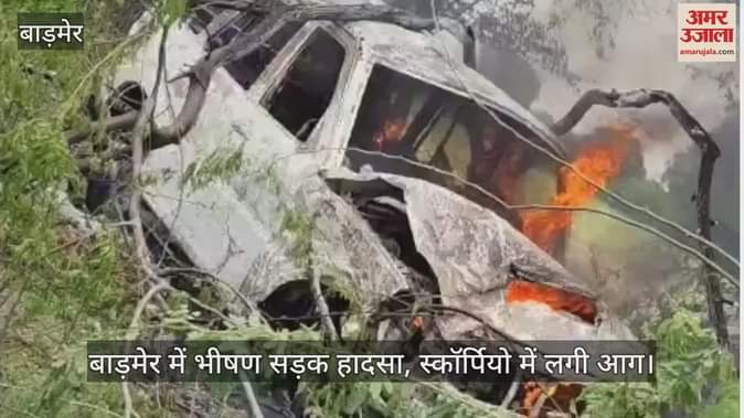 बाड़मेर में भीषण सड़क हादसा, स्कॉर्पियो में लगी आग