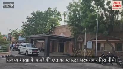 बाड़मेर में सोमवार शाम कलेक्ट्रेट परिसर में बड़ा हादसा होते-होते टल गया, जब राजस्व शाखा के एक कमरे की छत का प्लास्टर भरभराकर नीचे गिर गया। हादसे के समय कमरे में वकील समेत पांच लोग मौजूद थे। गनीमत रही कि पंखा चल रहा था, जिससे मलबा बिखर गया और किसी के सिर पर नहीं गिरा। हालांकि एक एडवोकेट के हाथ की उंगली में चोट लग गई।