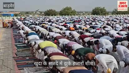 बाड़मेर सहित देशभर में शनिवार को ईद का पर्व मनाया जा रहा है। ईद के मौके पर बाड़मेर की ईदगाह में शनिवार सुबह नमाज अदा की गई। यहां ईद के अवसर पर हजारों मोमिनो ने खुदा के सजदे में शीश झुकाए ओर देश और दुनिया में अमन-चैन की कामना की। इसके साथ ही ईरान और इस्राइल के बीच चल रहे हालात को लेकर भी अमन-चैन की विशेष प्रार्थना की गई। मुस्लिम सामुदाय के लोगों ने एक-दूसरे को गले मिलकर ईद की मुबारकबाद दी। ईद की नमाज के बाद कौमी एकता समारोह का आयोजन किया गया।