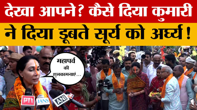 जयपुर में डिप्टी सीएम दिया कुमारी ने सोमवार को डूबते सूर्य को अर्घ्य दिया। देखिए उसके बाद वह क्या बोलीं!