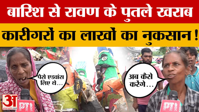 Jaipur: जयपुर में हुई बारिश के बाद रावण के कई पुतले खराब, कारीगर परेशान, क्या बोले? Amar Ujala News