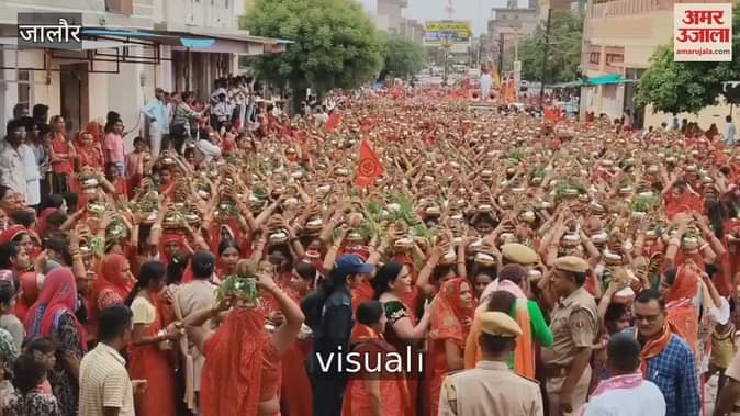 जालौर शहर में शनिवार को सनातन धर्म चातुर्मास सेवा समिति की ओर से भक्तसिंह स्टेडियम में श्रावणमासीय कथा का भव्य शुभारंभ हुआ। कथा प्रारंभ से पूर्व करीब पांच हजार महिलाओं और बालिकाओं ने कलश यात्रा निकाली। जिलेभर से आईं महिलाएं लाल साड़ी और चुनरी ओढ़े भक्त प्रह्लाद चौक से बड़ी पोल, तिलक द्वार व अस्पताल चौराहा होते हुए स्टेडियम पहुंचीं। यात्रा मार्ग में जगह-जगह श्रद्धालुओं ने पुष्प वर्षा कर कलश यात्रा व कथा वाचक अभयदास महाराज का स्वागत किया।