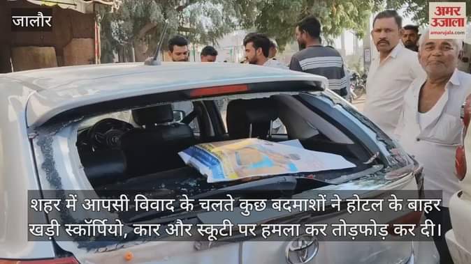 जालोर शहर में आपसी विवाद के चलते कुछ बदमाशों ने होटल के बाहर खड़ी स्कॉर्पियो, कार और स्कूटी पर हमला कर तोड़फोड़ कर दी। बदमाश पिकअप में सवार होकर आए और सरियों और हॉकी से वार कर वाहनों को क्षतिग्रस्त किया। सूचना पर पहुंची पुलिस ने मौके का मुआयना कर मामला दर्ज कर जांच शुरू की। घटना का संबंध बजरी विवाद से जुड़ा बताया जा रहा है।