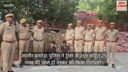 जालौर जिले में पुलिस ने अवैध शराब तस्करी के खिलाफ बड़ी कार्रवाई करते हुए एक ट्रेलर से पंजाब निर्मित 269 कार्टून अवैध शराब जब्त की है। ऑपरेशन भौकाल और मिशन मदमर्दन के तहत बागोड़ा थाना पुलिस द्वारा की गई इस कार्रवाई में दो तस्करों को गिरफ्तार किया गया है। ट्रेलर में शराब चावल के कट्टों के नीचे छिपाकर लाई जा रही थी। जब्त शराब की अनुमानित बाजार कीमत 25 लाख रुपये आंकी गई है, जबकि जब्त ट्रेलर और चावल के कट्टों की कीमत क्रमशः 40 लाख और 8.70 लाख रुपये बताई जा रही है।