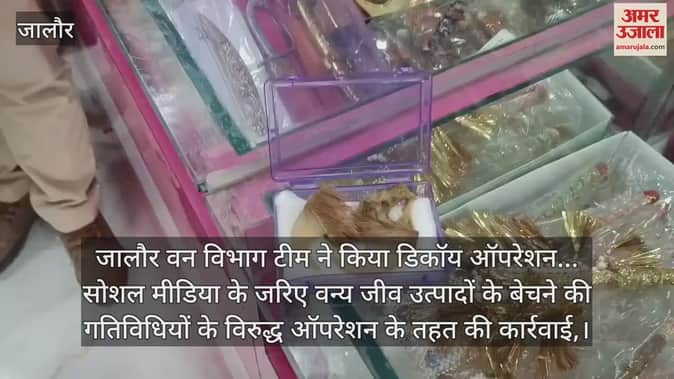 जालौर वन विभाग टीम ने सोशल मीडिया के जरिये वन्य जीव उत्पादों के बेचने की गतिविधियों के विरुद्ध कार्रवाई करते हुए जिले में ऑपरेशन डिकॉय चलाकर दुकान से कथित 11 बब्बर शेर के नाखून, दो गैंडे की चमड़ी निर्मित कड़े, एक हाथी दांत का ब्रेसलेट बरामद किया है।