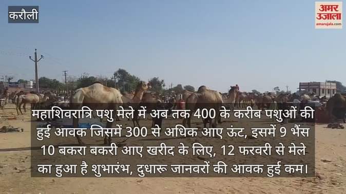 पशु मेला अधिकारी डॉ. गंगा सहाय मीणा ने बताया कि 12 फरवरी से शुरू हुए इस मेले में शनिवार तक 339 पशुओं की आवक हुई थी, जबकि रविवार को ऊंटों की संख्या में और बढ़ोतरी हुई। पशुपालक इनमें से कई पशुओं की खरीद-फरोख्त कर चुके हैं।