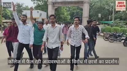 राजस्थान के कोटा में सरकारी महाविद्यालय की समस्याओं से झूझ रहे छात्रों के समर्थन में एबीवीपी और एनएसयूआई की ओर से प्रदर्शन किया गया। छात्र-छात्राओं ने गेट बंद कर महाविद्यालय प्रशासन को घेरा और मांगों को पूरा करने के लिए ज्ञापन सैंपा। इसके पहले छात्रों ने काॅलेज परिसर में ही धरना दे दिया और प्रशासन को मौके पर ही बुलाने की मांग पर अड़ गए। साथ ही चेतावनी दी कि मांगों पर शीघ्र कार्रवाई नहीं हुई तो आंदोलन और उग्र होगा। वहीं, महाविद्यालय में प्रदर्शन और हंगामें की आशंका को देखते हुए पुलिस जाब्ता भी तैनात किया गया।