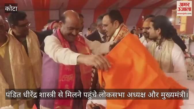 राजस्थान के कोटा जिले की रामगंजमंडी में आयोजित श्री गौमाता महोत्सव और राम कथा कार्यक्रम में शामिल होने के लिए प्रदेश के मुख्यमंत्री भजनलाल शर्मा और लोकसभा अध्यक्ष ओम बिरला शनिवार को सभा स्थल पहुंचे। इस दौरान दोनों ने कथा करने पहुंचे बागेश्वर धाम के पीठाधीश्वर आचार्य धीरेंद्र कृष्ण शास्त्री का आशीर्वाद लिया।
