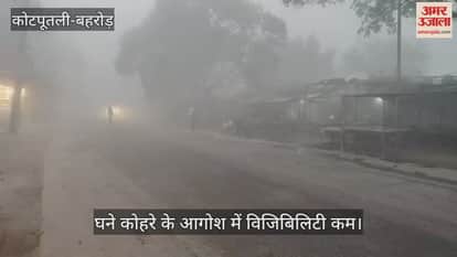 कोटपूतली-बहरोड़ जिले के बर्डोद कस्बा क्षेत्र में बुधवार तड़के से ही घना कोहरा छाया रहा, जिससे जनजीवन बुरी तरह प्रभावित हुआ। सुबह के समय कोहरे की तीव्रता इतनी अधिक थी कि दृश्यता मात्र 50 से 60 मीटर तक सीमित हो गई। इसका सीधा असर स्टेट हाईवे सहित आसपास की सड़कों पर देखने को मिला, जहां वाहनों की रफ्तार बेहद धीमी रही और यातायात सुस्त पड़ गया।