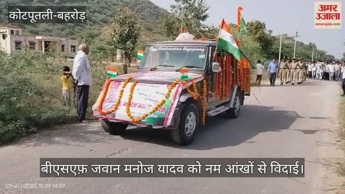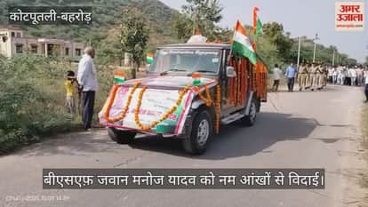 सीमा सुरक्षा बल में करीब 14 वर्षों तक देश सेवा करने वाले कोटपूतली-बहरोड़ निवासी जवान मनोज कुमार यादव पुत्र रामकुवार यादव का गुरुवार को उनके पैतृक गांव चुरी में सैन्य सम्मान के साथ अंतिम संस्कार किया गया। ग्रामीणों, जनप्रतिनिधियों और प्रशासनिक अधिकारियों की मौजूदगी में जवान को पूरे सम्मान के साथ विदाई दी गई। भारत माता की जय और वीर जवान अमर रहे के नारों के बीच पूरा गांव भावुक हो गया।
