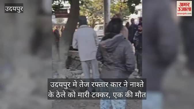 Hindi News ›   Video ›   Rajasthan ›   Udaipur News: Speeding car wreaks havoc, crushes breakfast cart, one dead