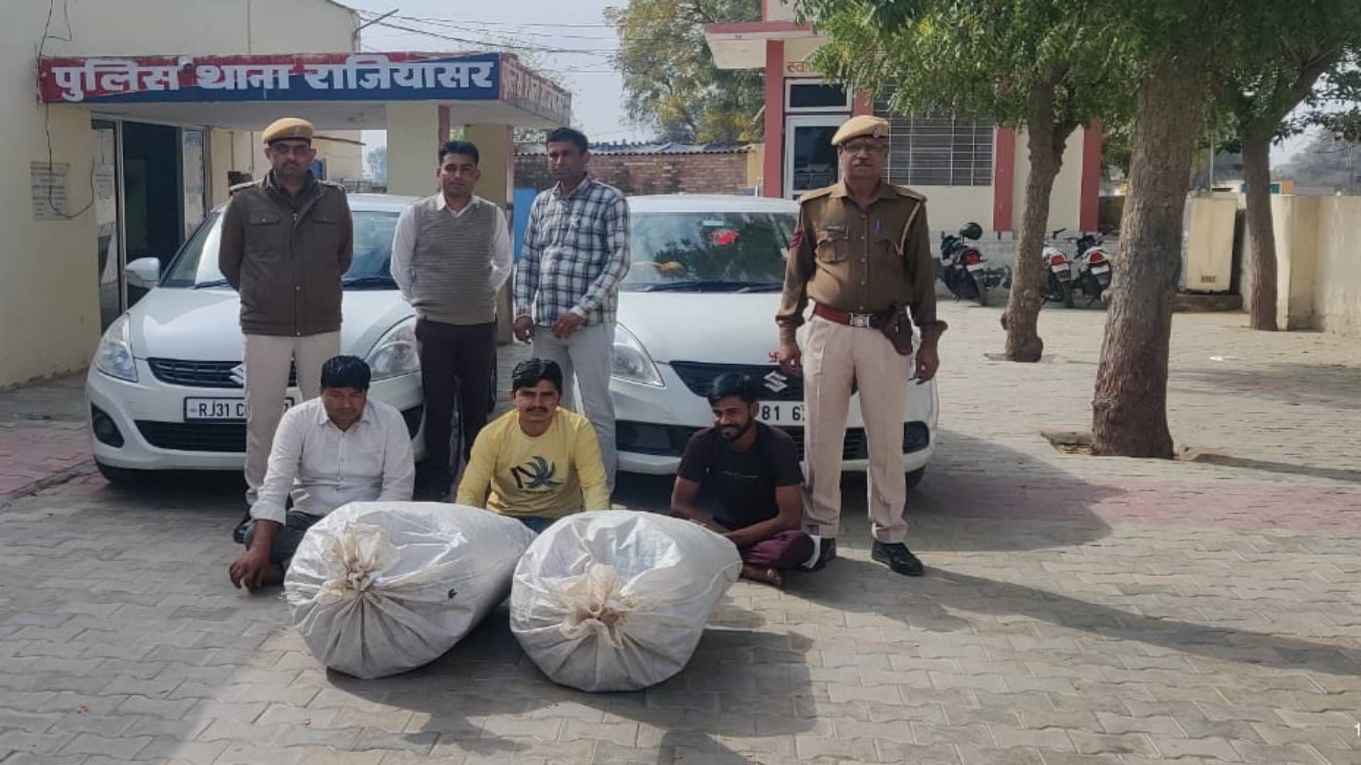 कार सवार दो लोगों से इस तरह वाहन को भगाने का कारण जाना तो दोनों घबरा गए। कार की तलाशी लेने पर कार से पोस्त बरामद हुई। इस दौरान पीछे से आ रही एक अन्य स्विफ्ट कार को रोककर तलाशी ली तो बीच की सीट पर एक कट्टा और डिग्गी में भी एक कट्टा पोस्त बरामद हुआ। पूछताछ करने पर अपना नाम प्यारेलाल पुत्र हंसराज, तोजेंद्र पुत्र रामकरण तथा शिवकुमार पुत्र रामप्रताप निवासी पीलीबंगा जिला हनुमानगढ़ के रहने वाले थे।