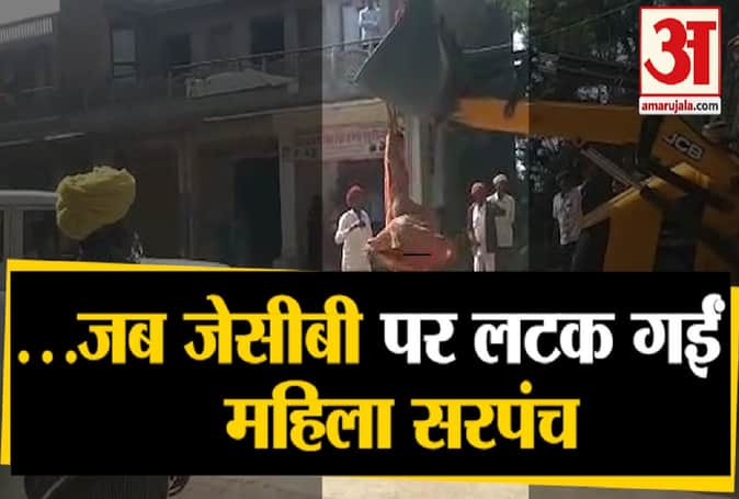 राजस्थान के जालोर में जेसीबी से लटक गईं सरपंच रेखा देवी, अतिक्रमण अभियान का कर रही थीं विरोध