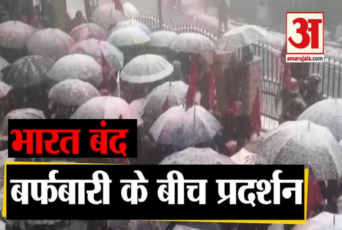 भारत बंद: शिमला में बर्फबारी के बीच विरोध प्रदर्शन