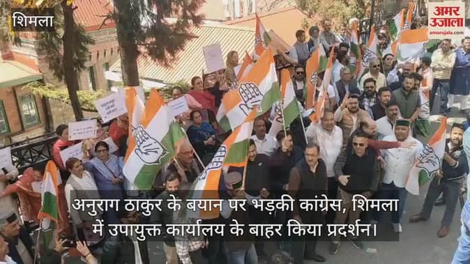 VIDEO : अनुराग ठाकुर के बयान पर भड़की कांग्रेस, शिमला में उपायुक्त कार्यालय के बाहर किया प्रदर्शन