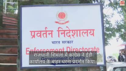राजधानी शिमला में कांग्रेस ने ईडी कार्यालय के बाहर धरना प्रदर्शन किया। प्रदर्शन में कांग्रेस प्रदेश अध्यक्ष प्रतिभा सिंह और कांग्रेस कमेटी के प्रवक्ता और ठियोग से विधायक कुलदीप राठौर मौजूद रहे।