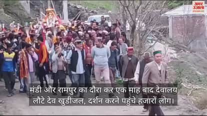 VIDEO : मंडी और रामपुर का दौरा कर एक माह बाद देवालय लौटे देव खुडीजल, दर्शन करने पहुंचे हजारों लोग