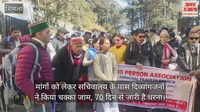 सचिवालय के बाहर दिव्यांगजन ठंड में ठिठुर रहे हैं। सुनवाई नहीं होने से वे गुस्साए दिव्यांगों को सचिवालय के बाहर धरने पर बैठे 70 दिन हो गए। सोमवार सुबह दृष्टिबाधित संगठन ने सचिवालय के बाहर चक्का जाम और प्रदर्शन किया। इस दाैरान वाहनों की आवाजाही प्रभावित रही। सुबह 10:00 बजे हुए चक्का जाम से कार्ट रोड पर यातायात बाधित रहा। इस दाैरान दिव्यांगजनों ने जमकर नारेबाजी की। दृष्टिहीन जनसंगठन जिला प्रभारी राजेश ठाकुर ने कहा कि सचिवालय के बाहर पांच लोग रोज बैठ रहे हैं। आजकल कड़ाके की ठंड में भी मांगों को लेकर उनका विरोध जारी है। कालीबाड़ी मंदिर के पास बैठे हुए तो दिव्यांगों को 804 दिन हो गए हैं। रविवार को चार लोग काली बाड़ी के पास बैठे थे हैं। राजेश ठाकुर ने कहा कि 1995 से बैकलॉग के उनके चतुर्थ श्रेणी के पद नहीं भरे गए हैं। एक प्रतिशत कोटे के तहत भर्ती होती है। शिक्षा, वन, लोक निर्माण, जलशक्ति आदि से चतुर्थ श्रेणी के पद भरे जाने चाहिए। उन्होंने कहा कि चतुर्थ श्रेणी के पदों को जल्दी भरा जाना चाहिए। उन्होंने कहा कि दिव्यांगों के लिए लगाई पेंशन को 1700 रुपये से पांच हजार किया जाए। उन्होंने कहा कि बीपीएल श्रेणी में बिना किसी शर्त के लाया जाए। प्रधानमंत्री आवास योजना और मुख्यमंत्री आवास योजना में बगैर किसी शर्त के किया जाए। उन्होंने कहा कि अपने लोगों को एडजस्ट किया जा रहा है। राजेश ठाकुर ने कहा कि सोमवार को दिव्यांग सचिवालय के बाहर चक्का जाम करेंगे।
