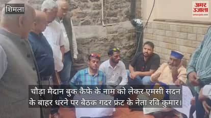 Shimla: चौड़ा मैदान बुक कैफे के नाम को लेकर एमसी सदन के बाहर धरने पर बैठक गदर फ्रंट के नेता रवि कुमार