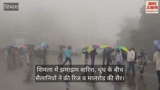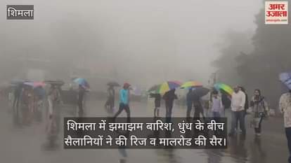 Shimla: शिमला में झमाझम बारिश, धुंध के बीच सैलानियों ने की रिज व मालरोड की सैर