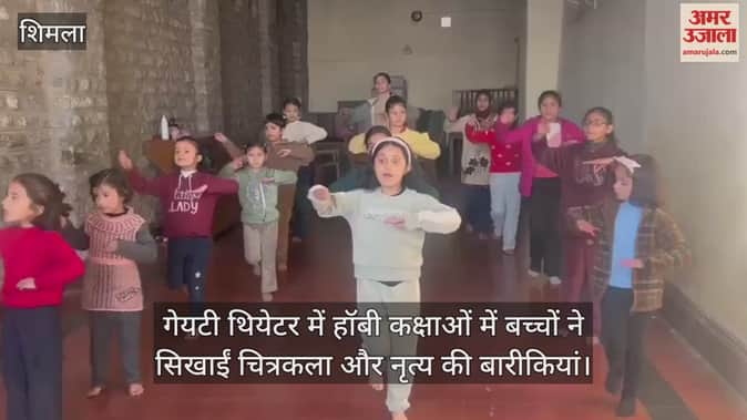 हिमाचल प्रदेश की राजधानी शिमला के गेयटी थियेटर में चल रही हॉबी कक्षाओं में बच्चों ने कथक के आधार नृत्य की बारीकियां सीख रहे हैं। इसमें उन्हें राउंड और फुटवर्क सिखाया गया। नृत्य की कक्षा में करीब 25 बच्चे उपस्थित रहे। वहीं चित्रकला की कक्षा में बच्चों को वाटर कलर लैंडस्केप पेंटिंग का डेमो दिया गया। साथ ही एब्स्ट्रेक्ट आर्ट और स्टिल लाइफ के चित्र बनाना भी सिखाया गया। इस कक्षा में 49 बच्चों ने भाग लिया।